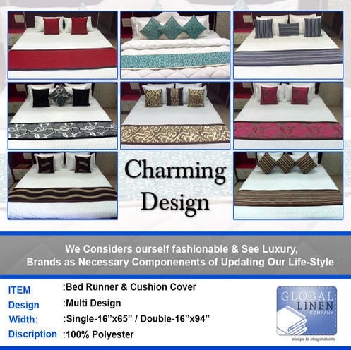 Global Linen Company is into manufacturing, supplying and exporting of an exclusive range of Bed Runners And Cushion Covers for Hotel Industry.